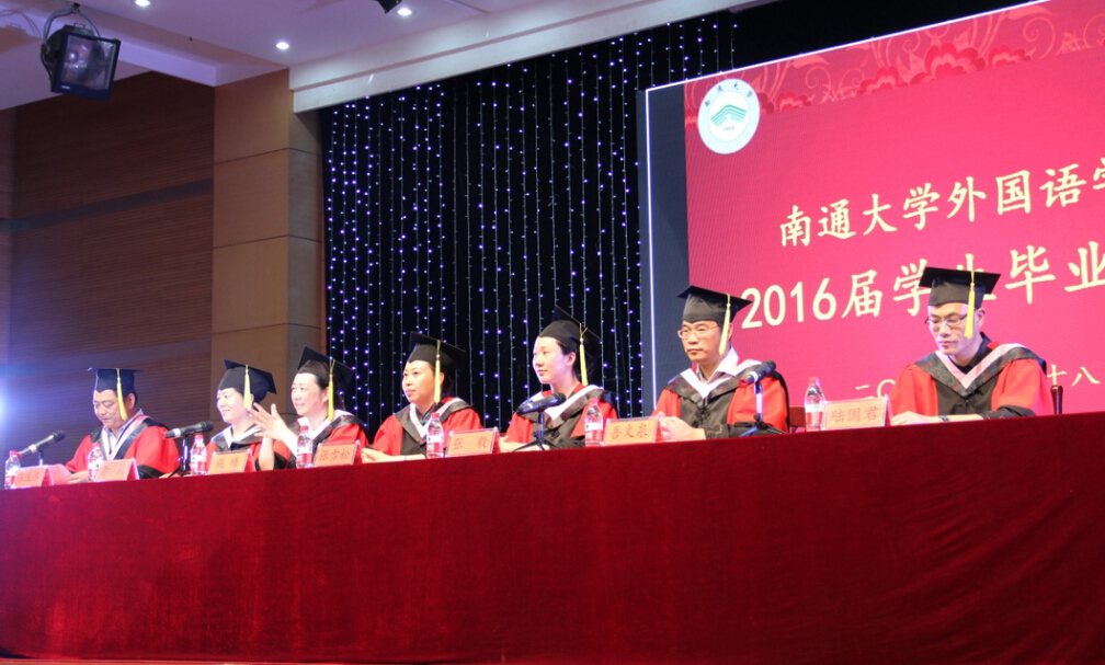 之后, 硕士生毕业生代表徐文雅同学和本科生毕业生代表田昕悦同学分别发言,回忆了他们在通大、在云顶国际学习工作生活的点滴难忘经历,向学校和老师们致以感谢与怀念之情。教师代表日语系主任张福旺在发言中,向毕业生提出了几点殷切希望:一、要做道德高尚的人。第二、要志怀高远。第三、要牢固树立终身学习的理念。最后,经理吾文泉教授在发言中回顾了2016届毕业生们在校期间取得的卓越成绩,向同学们的顺利毕业表示祝贺,吾经理寄语“莫让年华付东流”激励全体毕业生珍惜时光、坚持学习创新,祝愿毕业生们前程似锦。
