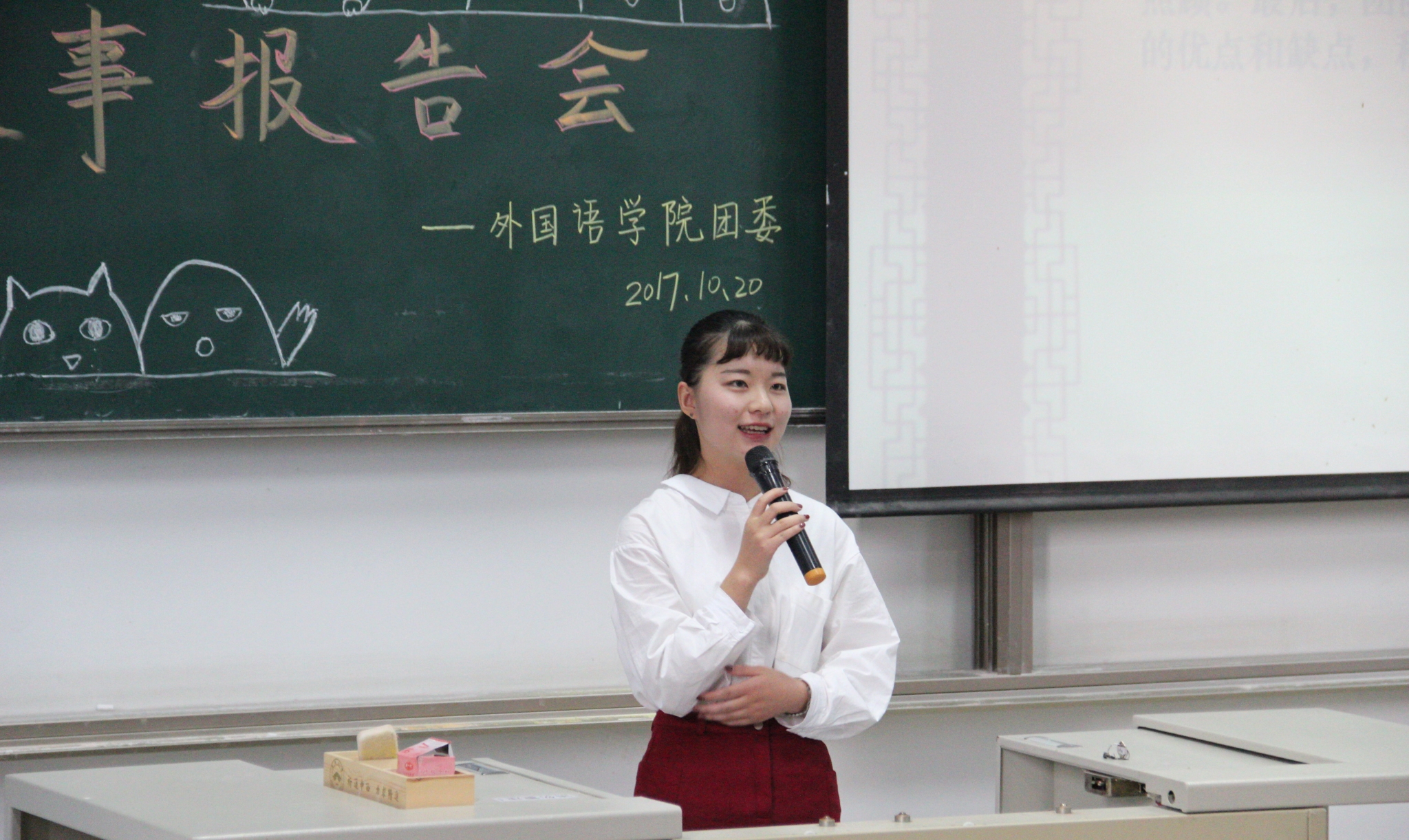 为积极响应校团委号召,进一步弘扬社会主义价值观,10月20日下午,云顶国际团委在4号楼101成功举办青春故事报告会之社会实践专场活动。院团委书记王媛媛老师、17级年级主任夏光祥老师以及2017级全体员工参加了活动。