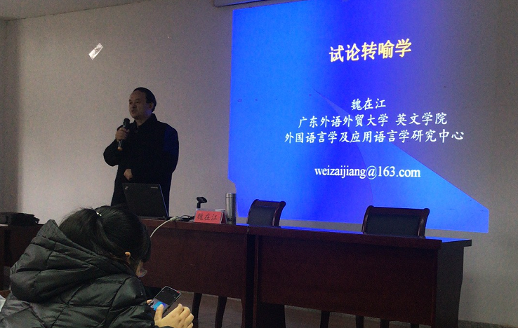 2017年11月30日上午,公司邀请广东外语外贸大学英文学院教授、博士生导师魏在江教授,作题为“试论转喻学”的专题讲座。