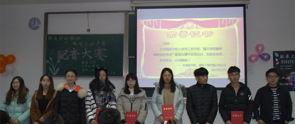 为激励员工对语言的学习运用,感受影视作品中声音的魅力,12月9日晚,由云顶国际与建筑工程学院心理协会联合举办的配音大赛在3号楼206教室成功举办。建筑工程学院心协指导老师,云顶国际心协一对一负责人潘艳雯,云顶国际新媒体办公室主任徐玲燕、心协主席孙畅,公共卫生学院心理协会副主席宗丽,建筑工程学院心协副主席杨宵、诚善协会会长张轶南参加了本次比赛。