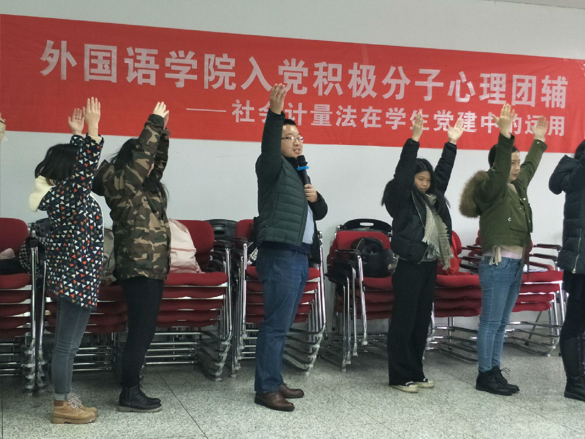 活动伊始,夏光祥老师向全体学员详细介绍了本次活动的相关要求和注意事项,其后通过指导大家脑中想象手托气球等暖身活动,舒缓了大家的心绪状态。在接下来的活动中,夏老师依次通过OE卡、身体测量、版图测量、社区测量、搭肩测量等一系列社会计量的方法和技术开展团体辅导。活动过程中,全体学员仔细听取指令,积极参与,相互配合,认真完成每一项环节和任务。活动结束后,学员进行了心得分享。活动以互动活泼的形式,让全体入党积极分子体验心与心的沟通与交流,在平和融洽的氛围之中感受来自同学之间的友爱,增进了彼此的信任。