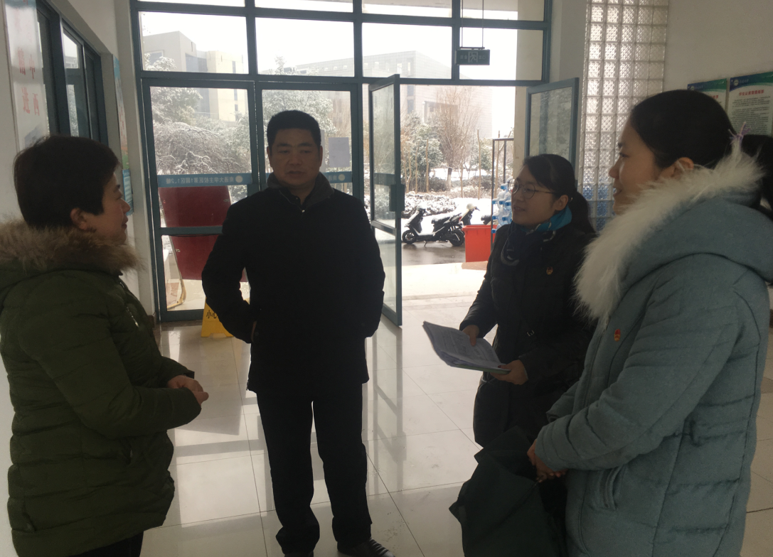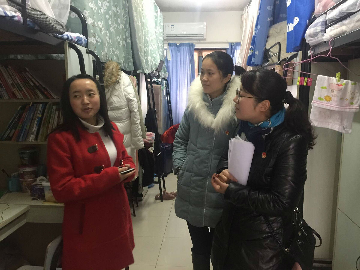 寒冬腊月,大雪纷飞。为应对南通地区强降雪天气,公司紧急做出员工寒假放假时间提前的安排。针对这一情况,公司党政领导迅速行动,第一时间组织安排学工队伍通知到位每一名员工,并走访员工宿舍,及时做好员工返乡工作。近日,公司党委书记施皓,党委副书记、副经理陈俊怀带领院学工办主任顾亚梅,团委书记王媛媛,辅导员施旋、夏光祥深入员工宿舍,多方位了解员工返乡情况、生活状况、思想动态等。
