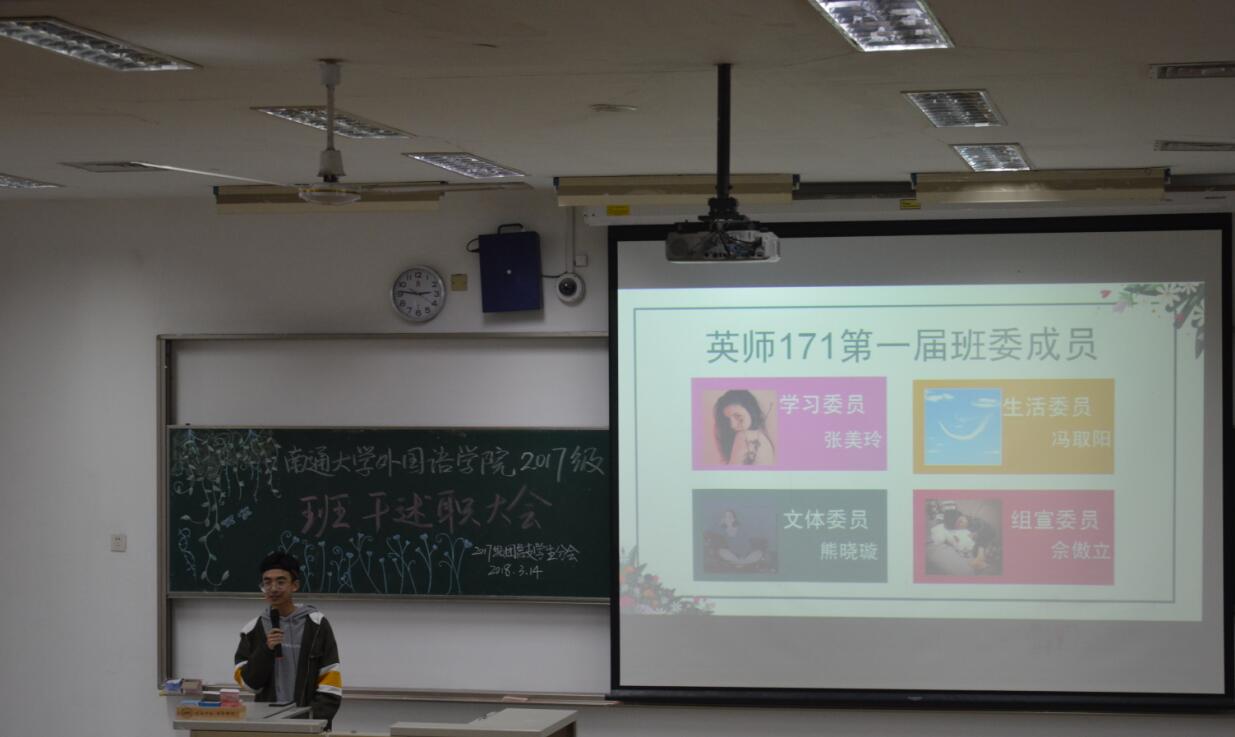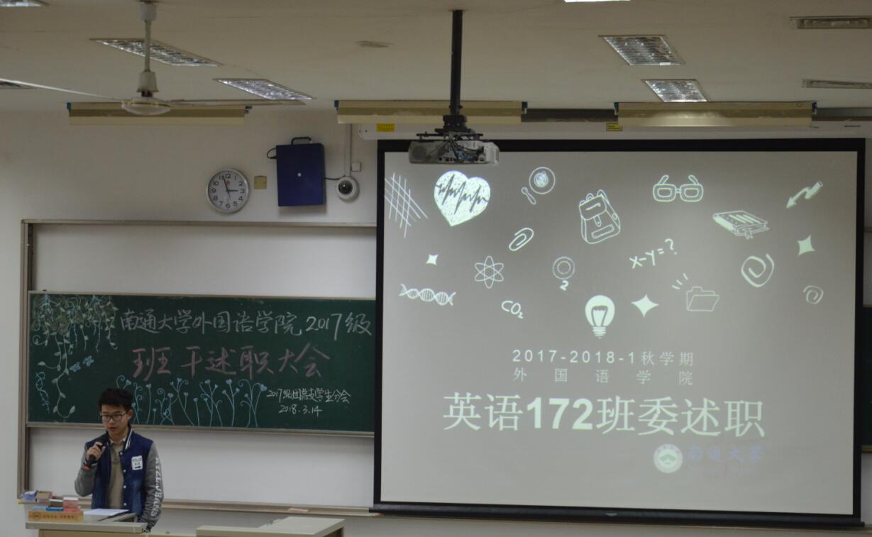 本次会议的主要内容为各班班长代表本班全体班委进行述职报告,总结上学期班干工作开展情况以及今后班级发展规划。会议上,各班班长精心准备,使用PPT、视频等媒介,图文并茂地通过事例阐述、数据分析、图片展示等方式,让每一位同学了解到班委日常工作及上学期班级开展的丰富多彩的校园文化活动,并且明确今后班级发展的目标和方向。在述职过程中,各班班长一吐肺腑之言,深感班委职责重大、工作艰辛,并对班级同学配合班委工作、做好班级建设表达真挚的感谢。活动最后,17级年级主任夏光祥老师总结本次大会,对各班班干上学期的辛苦付出表示感谢并鼓励各班班干继续发扬兢兢业业服务同学的奉献精神,提升班级凝聚力。