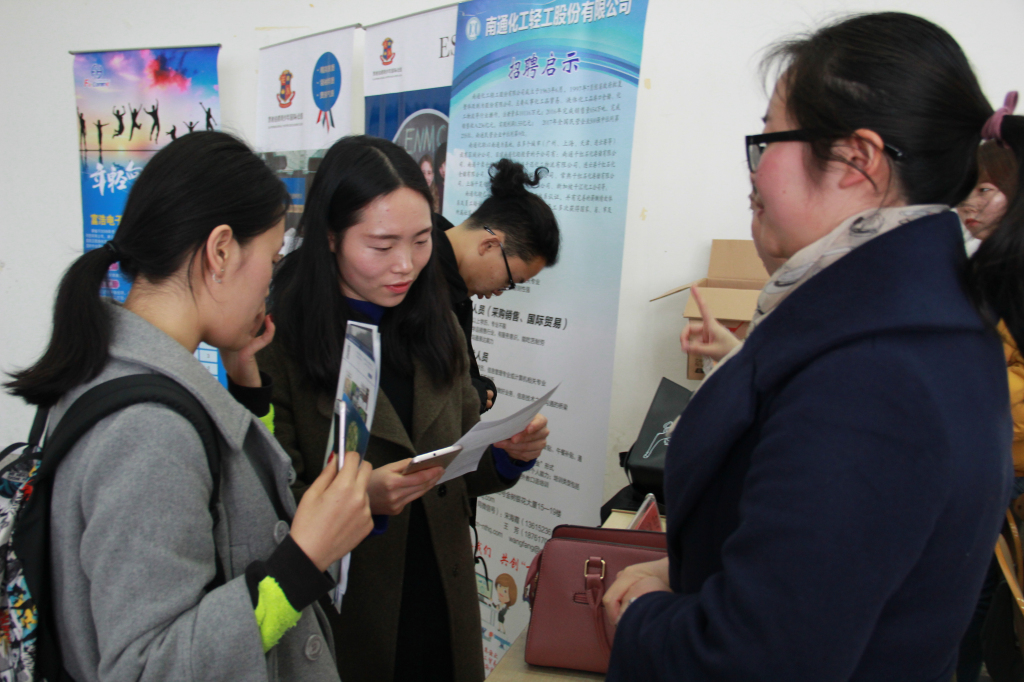 本次招聘会为外语类岗位专场招聘会,共设展位10余个。来自南通地区的化工轻工股份有限公司、韦博英语、兴盛纺织有限公司以及来自昆山、常熟等通外地区的富浩电子科技有限公司、迎阳无纺机械有限公司等用人单位,为毕业生提供近百个外语类工作就业岗位。各大用人单位从企事业概况、招聘需求、薪资待遇、工作内容、员工培训体系和晋升通道等方面展开宣讲。招聘会现场,求职者手持简历积极与用人单位沟通交流,并进行现场面试。用人单位对公司毕业生给予了充分肯定,多名毕业生与用人单位达成就业意向。