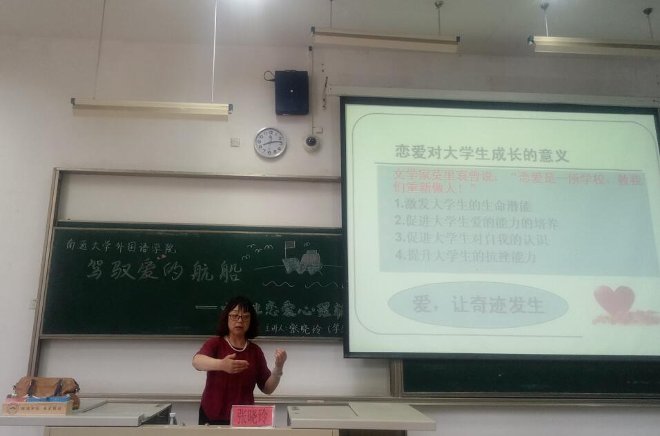 5月16日下午,为加强恋爱心理辅导,校心理健康教育服务中心张晓玲受邀在JX04-101为云顶国际16级全体员工作“驾驭爱的航船——老员工恋爱心理辅导”心理讲座。讲座由院学工办主任顾亚梅主持。