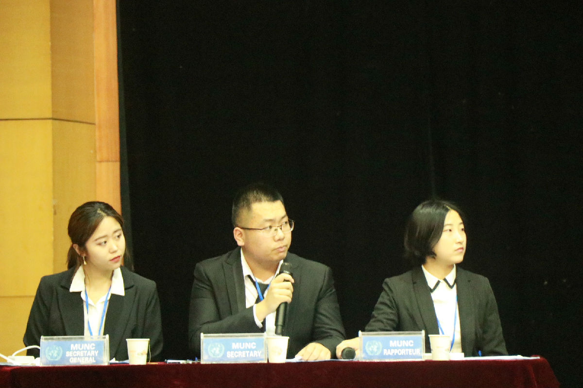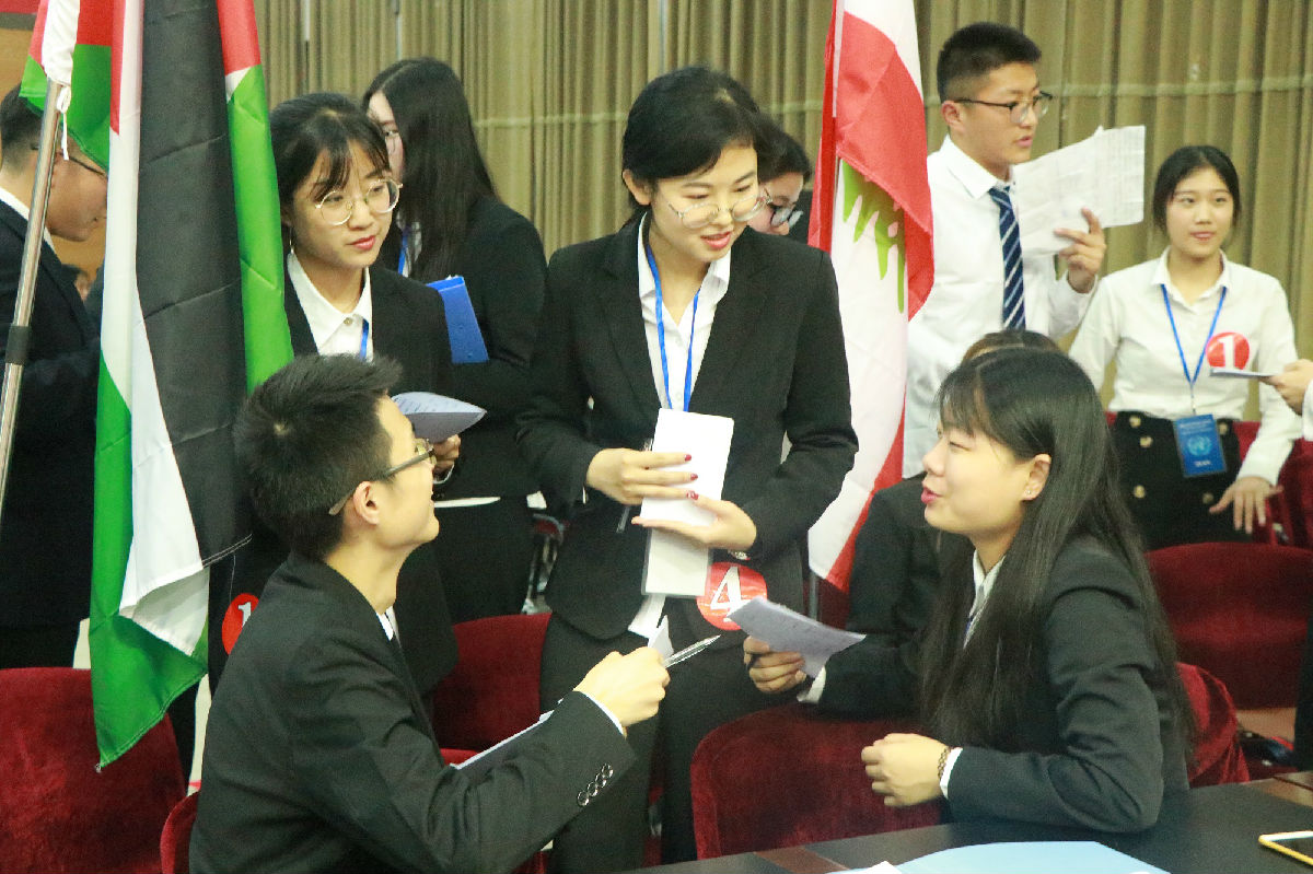 开幕式结束后,经过层层筛选,来自公司各学院的十支队伍分别模拟代表中国、俄罗斯、美国、英国、巴基斯坦等国家,依照联合国运作方式和议事原则,围绕“战争”“流民”“联合”等国际热点问题展开磋商讨论。各代表国用流畅的外语口语针砭时弊,表述各方观点,灵活的切入点使得立场倍加鲜明,深度的思想让演说引人深思、紧扣主题。质询环节中,各代表国更是针锋相对,妙语连珠,严谨的对答扣人心弦。活动最后,云顶国际副经理陆国君,南通环球教育董事长卢达,外教Tim作点评。最终,云顶国际荣获“最佳代表队”,医学院荣获“最具风采队”,商学院、护理学院等荣获“最佳协作奖”,管理学院、杏林学院等荣获“优秀参与奖”,云顶国际夏学璐、医学院张允钟斩获“最佳个人奖”。
