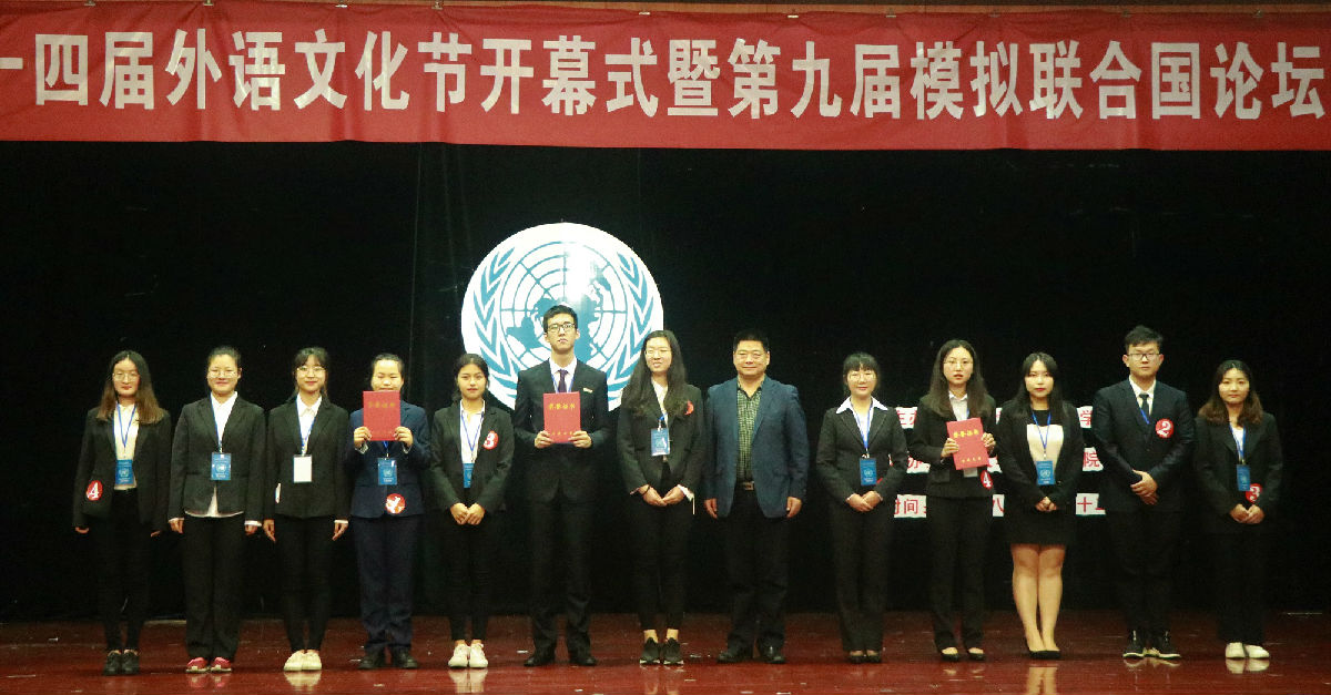 5月22日晚,云顶国际第十四届外语文化节开幕式暨第九届模拟联合国论坛在老员工活动中心举行。本届文化节由校教务处、学工处、团委主办,云顶国际承办。学校教务处处长丁锦宏,团委书记朱城,学工处副处长邵春明;公司党委书记施皓,经理吾文泉,副经理陆国君,公司党委副书记、副经理陈俊怀出席开幕式,学院辅导员、班主任代表,外籍教师代表,Lucila西语工作室钱璐,南通环球教育董事长卢达及各学院员工代表参加活动。