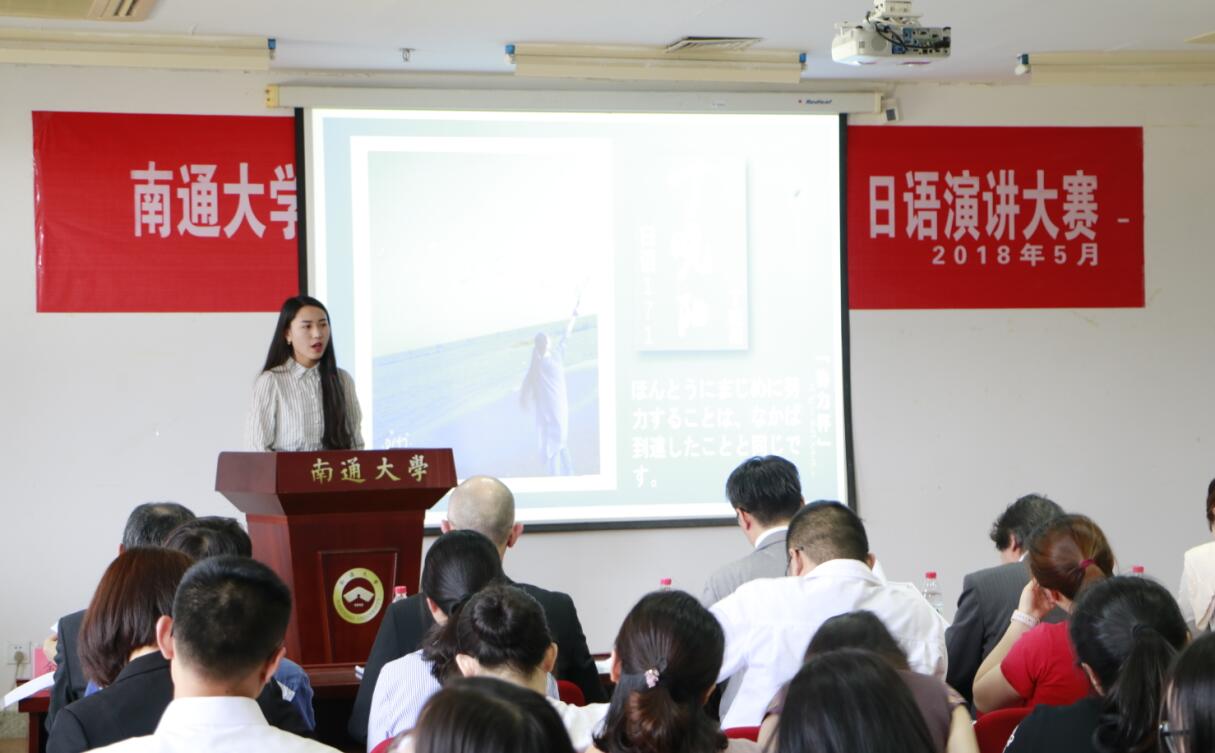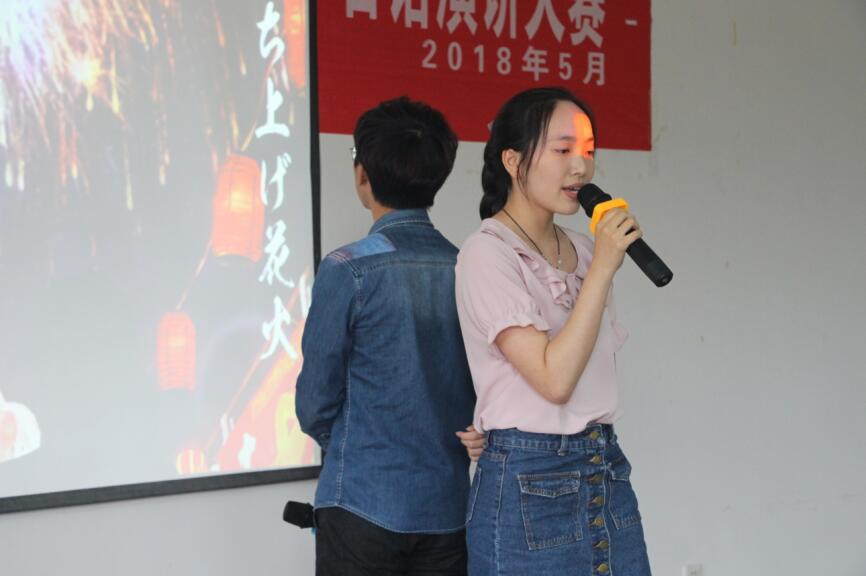 经过初赛选拨,来自日语系各年级的20名选手进入决赛。决赛分为定题演讲和即兴演讲两个环节。定题演讲环节围绕“苦あれば楽あり”(苦尽甘来)展开,选手完成演讲后接受现场评委提问,充分考验选手的临场应变能力和日语掌握程度;即兴演讲环节中,选手们缜密的思维、流利的表达和妙趣横生的演讲引来现场阵阵掌声。点评环节中,评委在肯定选手们出色发挥的同时,也针对演讲者的动作神情和技巧等方面给予了建议。在比赛中场时,男女对唱《打上花火》、古筝表演《渔舟唱晚》和民族舞《大鱼》等节目,将现场气氛推向高潮。激烈角逐之后,日语162班叶怡恬夺得本次大赛一等奖。