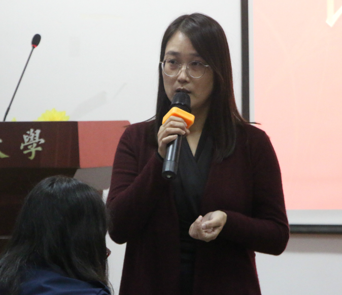 比赛的最后,由评委老师姜海红和Mindy老师对本次活动进行总结。姜海红老师明确了演讲比赛的目的,她认为演讲比赛主要的是思想的交流,每个演讲者都是成功者,她鼓励在场的所有同学,获得成功必须经历三个步骤:受苦、幸存和成功,使在座的所有同学受益匪浅。而Mindy则着重就演讲本身给出了一些指导性的建议。她首先指出专业组中存在的不足,认为选手选取的例子过于局限,随后鼓励选手演讲应该寻找不同点,使自己区别于其他选手,最后强调了演讲需要富有激情和使用一些语言技巧,这样才可以感染观众。