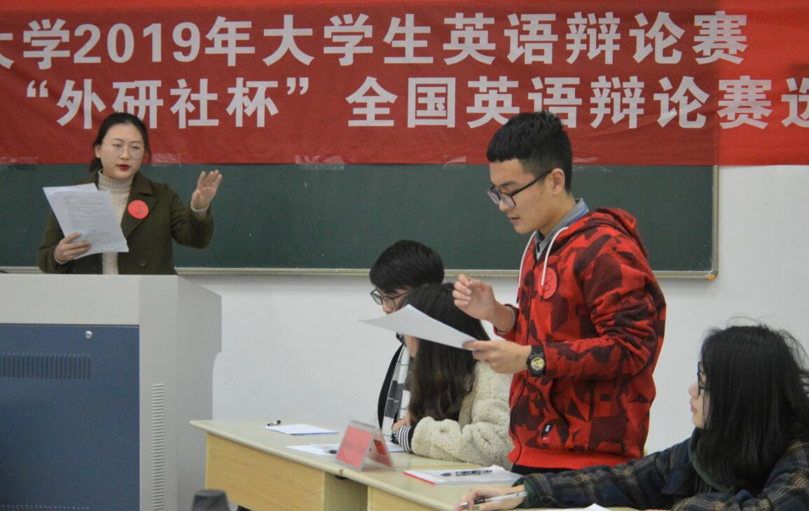 本次比赛参照英国议会赛制,来自全校各学院不同专业的32名同学组成了4组辩论队,每组8人,正反方上下院各2人。每支队伍都需要与另3队进行竞争,最后决出1至4名。