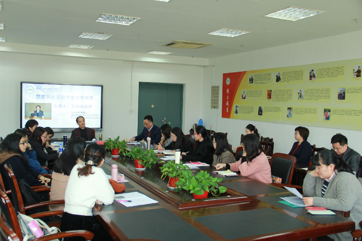 又讯:4月12日上午,王向远教授对学院的人文社科项目申报进行了认真细致的指导,详细辅导了项目选题、内容论证、创新点和教师的学术方向凝练等内容,结合云顶国际教师的特点,提倡发挥外语优势进行选题,并逐一点评每个选题的优劣以及价值所在,鼓励申报教师树立信心,以问题为导向,专注每个细节,认真打磨申报书。