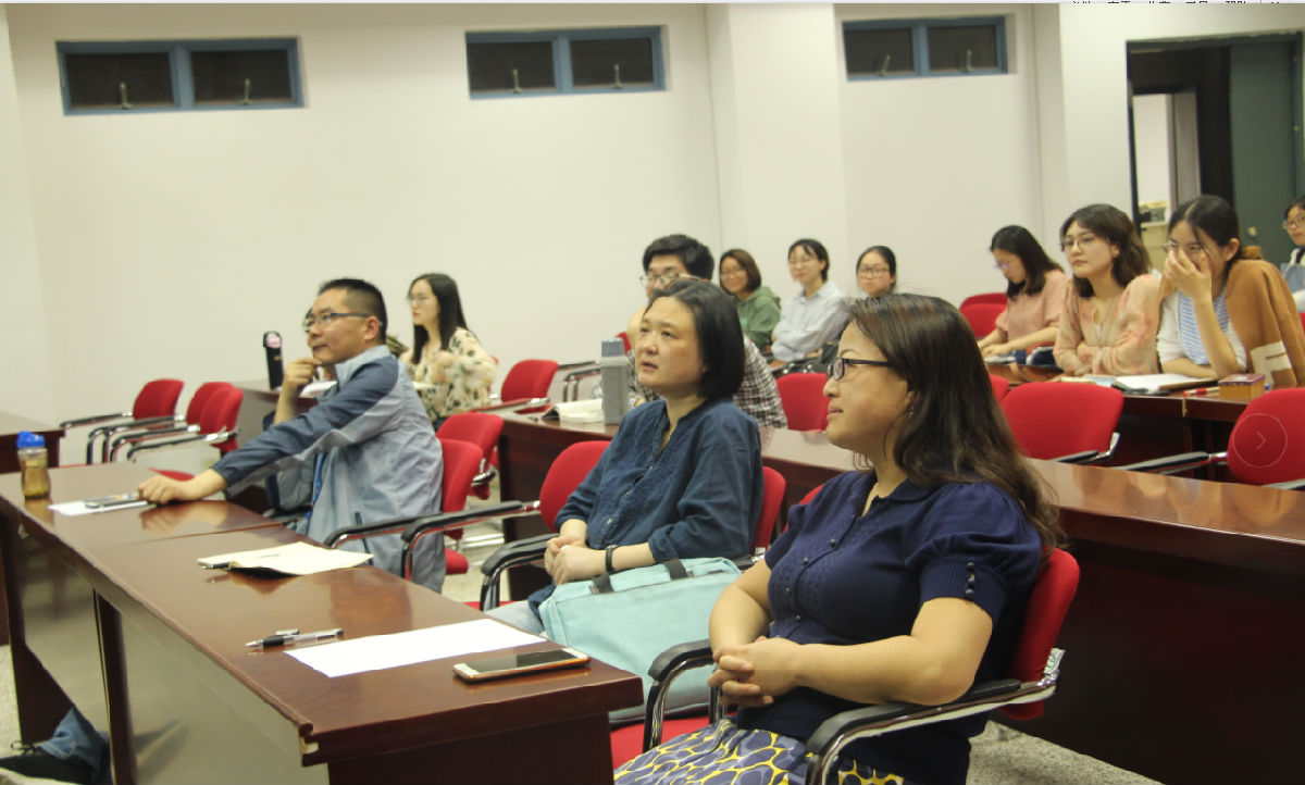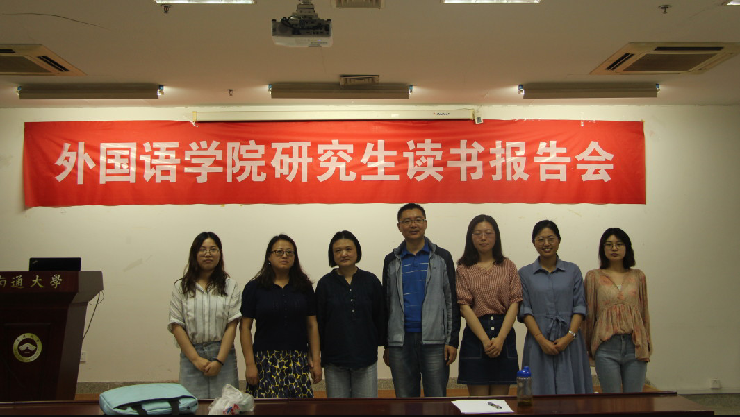 本次报告会依次由赵芝萍、王夏、郑孟娜和崔倩凡四位同学做报告。首先,赵芝萍以“江苏卷与全国卷1高考阅读理解词汇特征分析”为题,分享其研究思路。张海燕老师就其研究目的和现实意义作出点评,并给出意见。接着,王夏以“图式理论视角下陶渊明田园诗歌英译研究”为题做出报告,严晓江教授对其研究方向的侧重点提出看法,并建议其选择与本人语言学专业相关性更强的研究方向。紧接着郑孟娜就加缪的《局外人》中的零度写作进行了读书报告。宋建清老师对其报告中“自由”的定义和“乌托邦”倾向作出点评和讨论。最后,崔倩凡同学分享了“移动学习”的研究现状,严晓江教授建议其进步一思考分析“移动学习”的利弊和趋势。