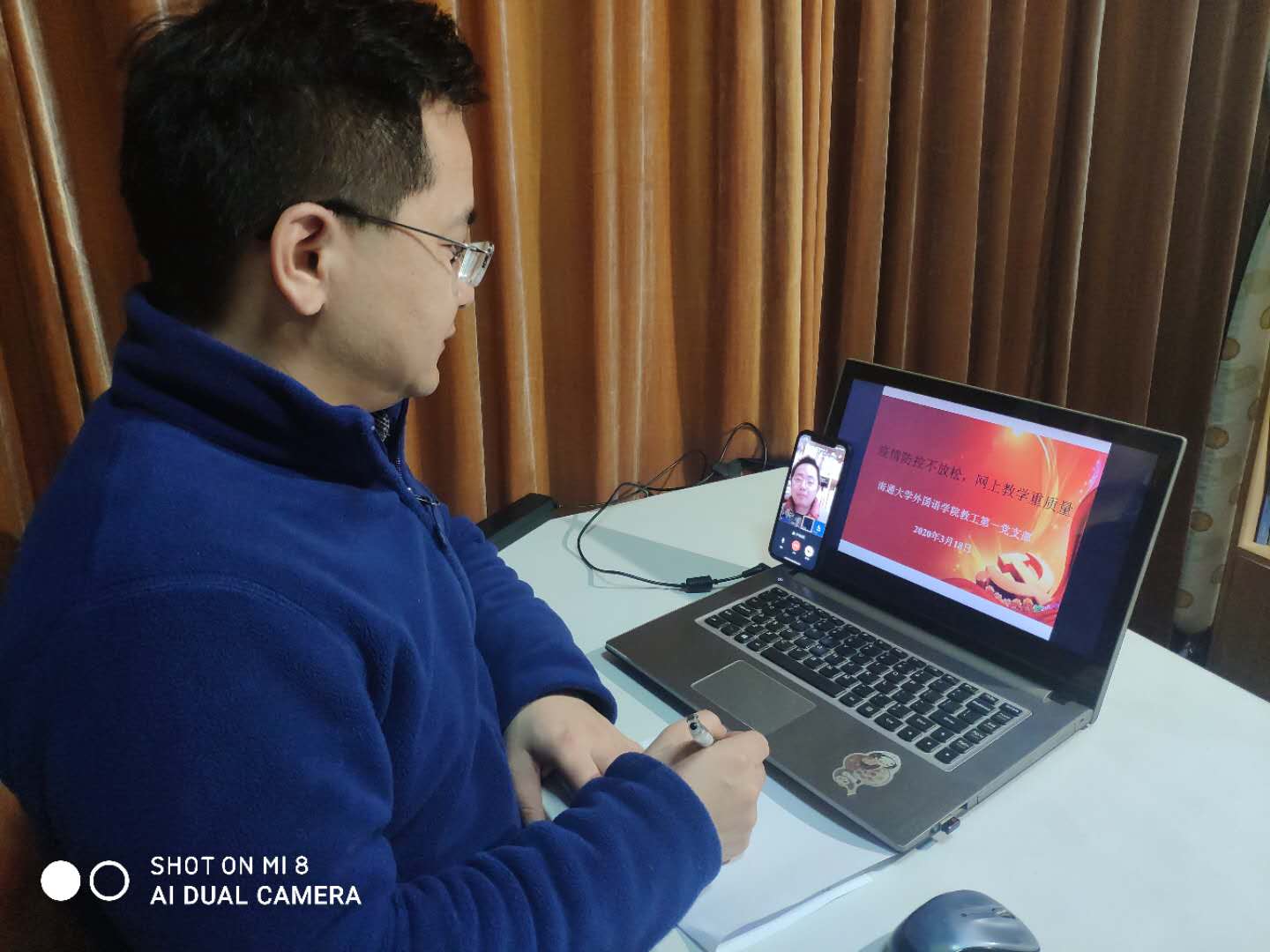 支部书记聂玉景组织大家学习习近平总书记有关疫情防控的讲话精神,传达了省教育厅和学校对疫情防控的要求,希望大家牢记党员身份,积极配合防疫部门工作,做好正面宣传引导。大家还围绕“向网上教学要质量,促员工专业真发展”话题展开讨论,多位老师分享了20多天的线上教学心得体会,并就遇到的问题进行探讨,寻求解决方案。