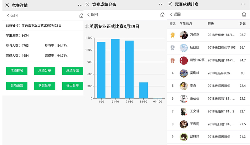 大赛借助“词达人”平台,采取线上模式进行,员工通过手机端注册登录参赛,赛题以老员工英语教材、CET-4词汇手册和CET-6核心词汇为基础,由平台自动抽题,选手在1小时内完成单词释义、单词填空、单词搭配和拼写等题型,学院老师和平台管理员可以通过监控端口来观看整个赛程,比赛成绩、排名由“词达人”平台即时自动完成并呈现给选手。