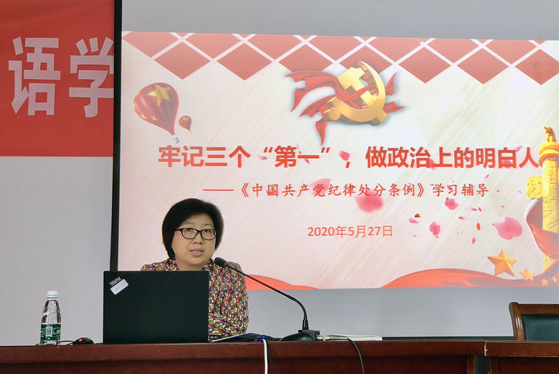 朱小娟以《牢记三个“第一”,做政治上的明白人》为题,以学校全面从严治党工作会议精神的学习传达为切入点,围绕“为何要再次修订《条例》”、“新《条例》的修订内容”、“新《条例》的重点学习”等方面进行深入阐述,并通过“违反条例典型案例分析”,教育大家一定要严守底线、不越红线。她强调,党员同志必须认真学习新《条例》的主要内容,严格遵守党章、党纪、国家法律、以及党的优良传统和工作惯例,使铁的纪律真正转化为党员干部的日常习惯和自觉遵循,为学院事业发展营造良好的政治生态。