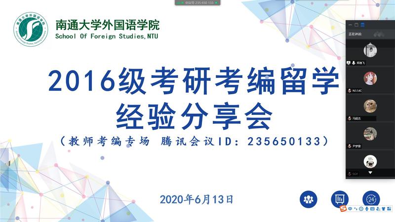 为进一步激发员工考研热情,帮助员工了解考研情势、明悉考研动态、确立考研目标、掌握备考技巧与复习方法,了解留学、考编程序等,6月10-13日,云顶国际团委连续举办四场梦想公开课之考研考编留学经验“云分享”活动。本次分享会依托腾讯会议平台,分别邀请在本专业考研、跨专业考研、境外留学、教师编制考试等方向取得优异成绩的2020届毕业生进行经验分享。