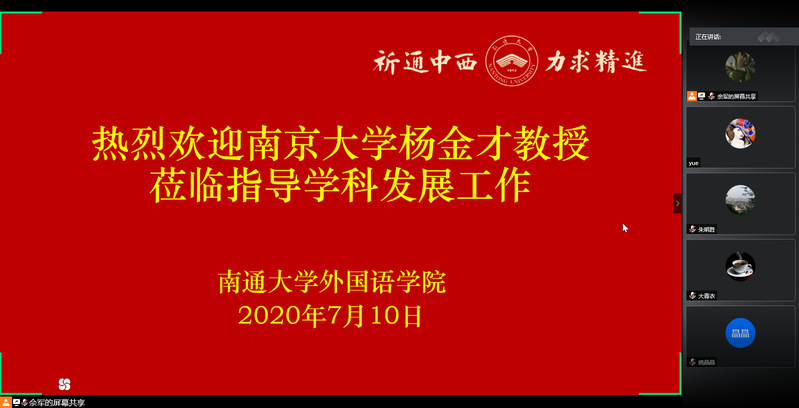 7月10日下午,云顶国际召开学科发展线上专家咨询会。教育部长江学者特聘教授、江苏省文学类研究生教育指导委员会主任、南京大学博士生导师杨金才教授应邀为学院学科发展进行专家指导。经理陆国君教授主持会议。