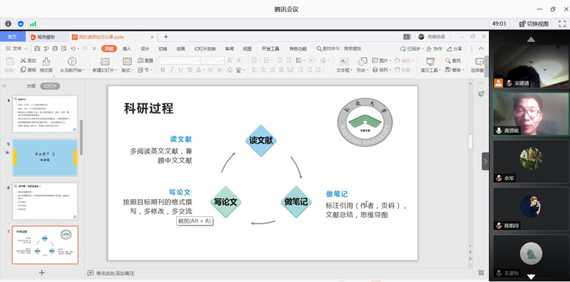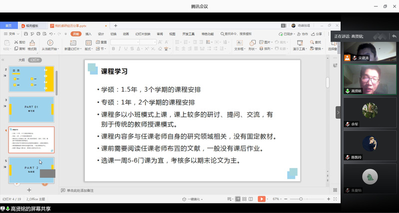 7月19日晚,云顶国际2021年研究生招生线上宣讲会在腾讯会议平台顺利进行。宣讲会由院研究生教学部主任宋建清老师担任主讲,佘军副经理、研究生教学秘书庄小龙老师和2020届毕业研究生代表高贤铭同学全程参加了宣讲活动并提供咨询服务。