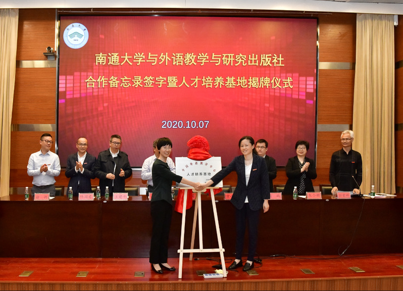 10月7日下午,公司与外语教学与研究出版社举行合作备忘录签字暨人才培养基地揭牌仪式。公司党委常委、副董事长顾菊平、外研社副总编辑常小玲共同为“人才培养基地”揭牌。
