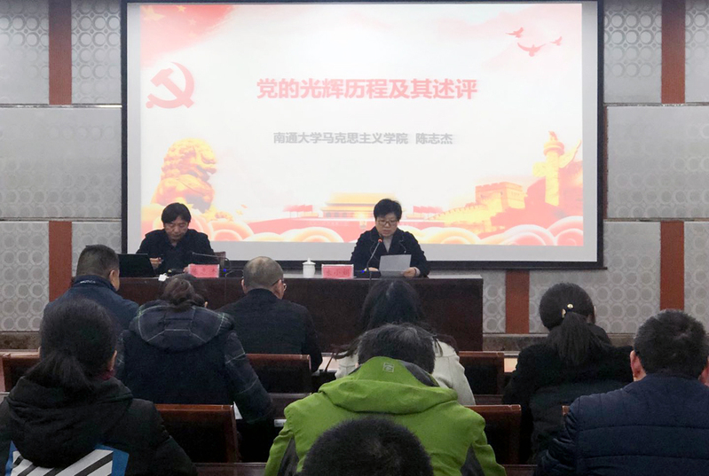 陈志杰从中国共产党领导新民主主义革命的历史、中国共产党领导社会主义革命的历史、开始全面建设社会主义的历史以及中国特色社会主义伟大事业的历史等四个阶段,带领大家回顾了党从诞生、发展到壮大,艰难而辉煌的革命历程,并结合自己的研究体会,总结了中国共产党百年奋斗史的经验:一是坚持科学正确决策与重要政策的及时调整;二是高举民主大旗,践行民主政治;三是政治路线的高度统一源自于理论创新;四是党的自身建设是事业成败的关键。