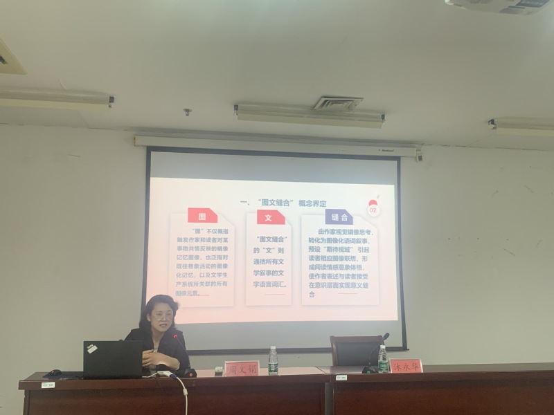 周文娟教授的讲座立足于系统科学认识观,结合威廉·福克纳作品中的经典片段,形象生动地阐明“图文缝合”接受效应的发生逻辑、内在理路、运行机制与研究价值。周教授的讲座拓宽了全体与会教师和研究生的研究视野,对与会师生的文学研究起到了很好的启迪和促进作用。