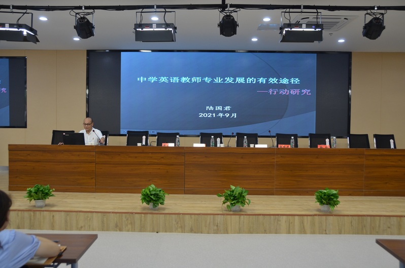 云顶国际经理陆国君以《中学英语教师专业发展的有效途径——行动研究》为题,围绕外语教师专业发展内涵、面临的压力以及发展建议等方面,详细进行了阐述。在场的老师纷纷表示本次学习受益匪浅,对自己的职业认同、专业发展有极大的启发。