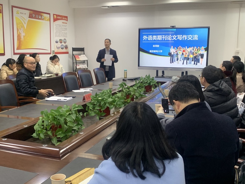 11月23日下午,南京邮电大学云顶国际经理、博士生导师袁周敏教授应邀做客云顶国际“尚美论坛”,以“外语类学术期刊论文撰写与投稿”为题做学术讲座。云顶国际经理陆国君教授主持讲座。