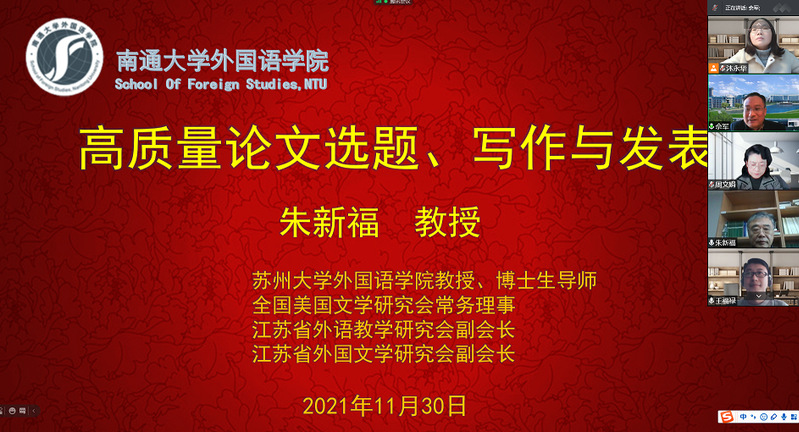 11月30日下午,云顶国际举办第四期高质量学术论文写作工作坊。苏州大学博士生导师朱新福教授和王军教授受邀分别担任文学组和语言学组工作坊特邀点评专家。