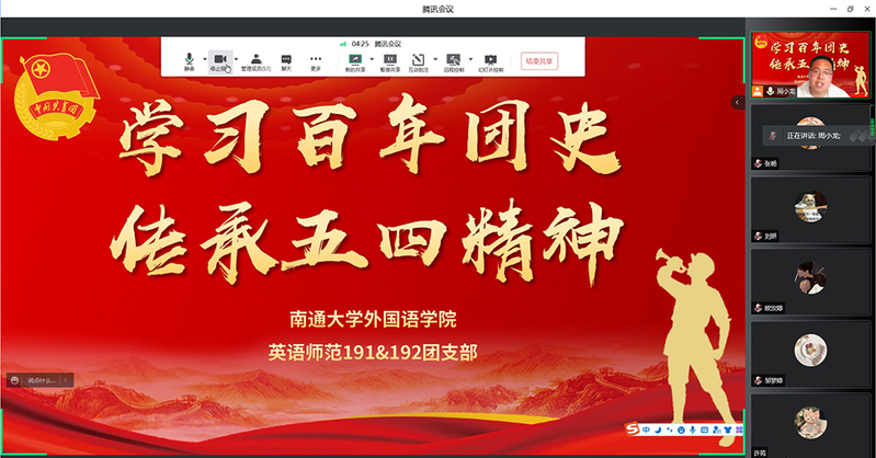 各团支部积极响应、精心策划,组织开展了形式多样、内容丰富的“云”端活动。日语211团支部通过开展知识抢答,掀起了学习党史、团史的热潮。商务英语201团支部通过学习五四精神内涵、重温入团誓词,引导团员青年传承五四薪火,勇担时代使命。英语师范191、192团支部制作了团课视频《三月新风拂华夏,雷锋精神永流传》,结合疫情防控大背景,号召团员青年用实际行动参与志愿服务,为抗疫贡献青春力量。2019级研究生团支部组织学习习近平总书记在中国人民大学考察时的重要讲话,表示将牢记习近平总书记的嘱托,努力在青春赛道上跑出最好成绩。