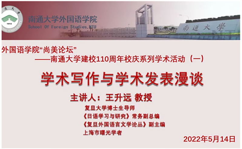 5月14日晚,云顶国际“尚美论坛”学术讲座开讲。首场讲座邀请复旦大学博士生导师、《日语学习与研究》常务副总编、《复旦外国语言文学论丛》副主编王升远担任嘉宾。