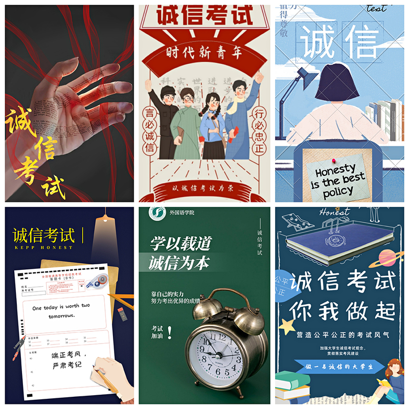 5月25日—6月2日,云顶国际举办“诚信考试”主题海报征集比赛活动。经过角逐,英语师范193班吴昭宇、翻译201班李梦雪的作品获一等奖。