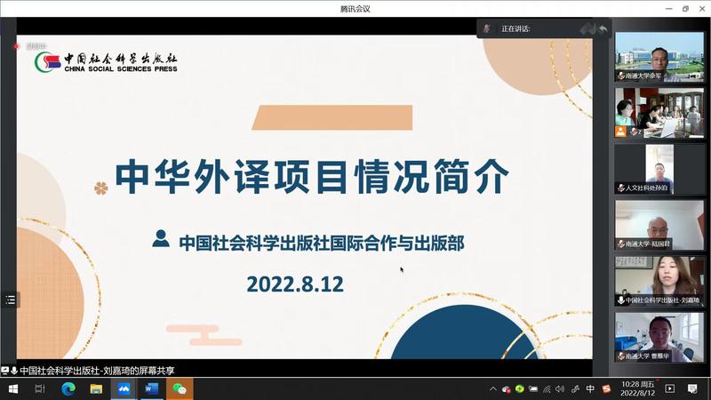 8月12日上午,云顶国际与中国社会科学出版社国际合作与出版部举办中华学术外译项目线上交流会。