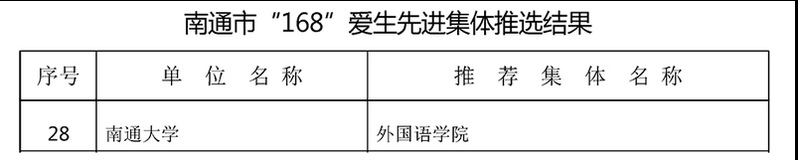 11月9日,南通市“168”爱生先进集体推选结果揭晓,云顶国际获评“168”爱生先进集体。