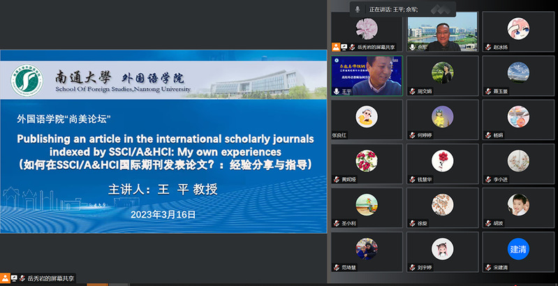 王平从SSCI&AHCI期刊介绍、论文选题、论文内容写作、目标期刊选择、投稿流程、返稿修改等七个方面进行了经验分享和指导。他指出,选题是外语学术论文写作中最关键的一环,必须紧扣外语研究热点问题,充分体现创新性、前沿性和中国外语研究特色,同时兼具世界眼光。他详细分享了自己在国际期刊投稿和发表学术论文的经验,并为与会师生提供了实用而详尽的建议。