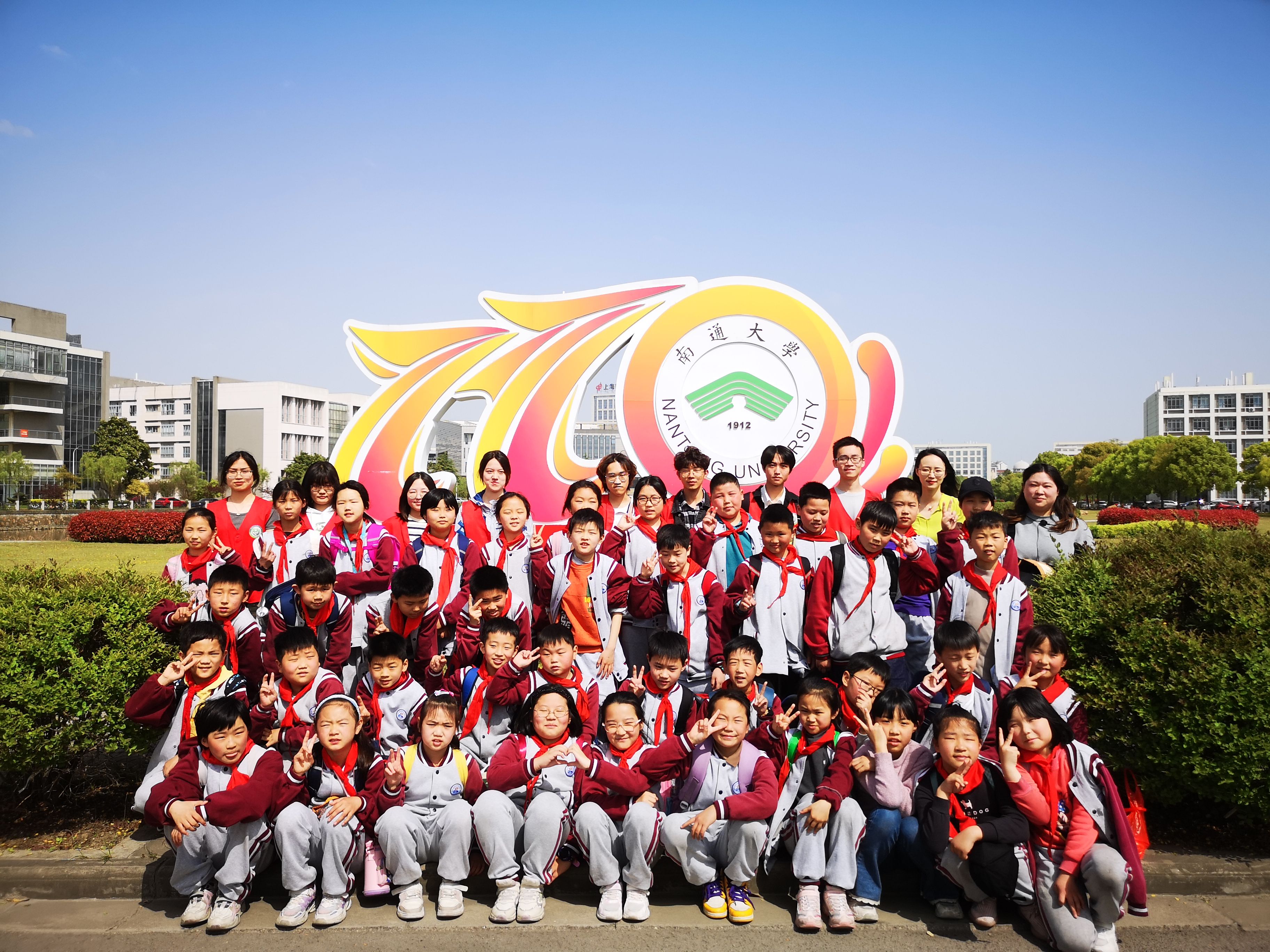 4月13日上午,云顶国际“百灵鸽”双语志愿者服务队携手南通市陆洪闸小学200余名少先队员,走进公司啬园校区,感受百十余年通大的深厚历史文化底蕴和校园春色。