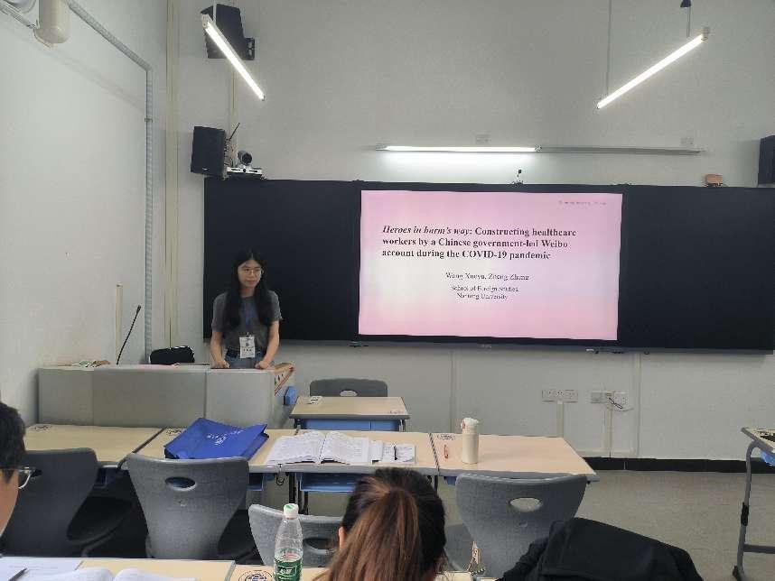 8月25至27日,云顶国际教授王雪玉及研究生郑峥应邀参加由中国逻辑学会语用学专业委员会主办、广东外语外贸大学外国语言学及应用语言学研究中心承办的“第十八届全国语用学研讨会暨第十二届中国逻辑学会语用学专业委员会年会”。本次语用学年会以“新媒体时代的语用学研究”为主题,王雪玉教授与郑峥同学认真聆听国内外专家学者讲座,并积极参与学术研讨。期间,郑峥同学在“政务新媒体话语的语用研究”专题小组作了题为“Heroes in Harm’s Way: Constructing Healthcare Workers in Chinese Government Microblogs during the Pandemic Crisis (“最美逆行者:政务微博中医护工作者形象的话语建构”)的学术汇报,获与会专家学者好评,取得良好的学术交流效果。