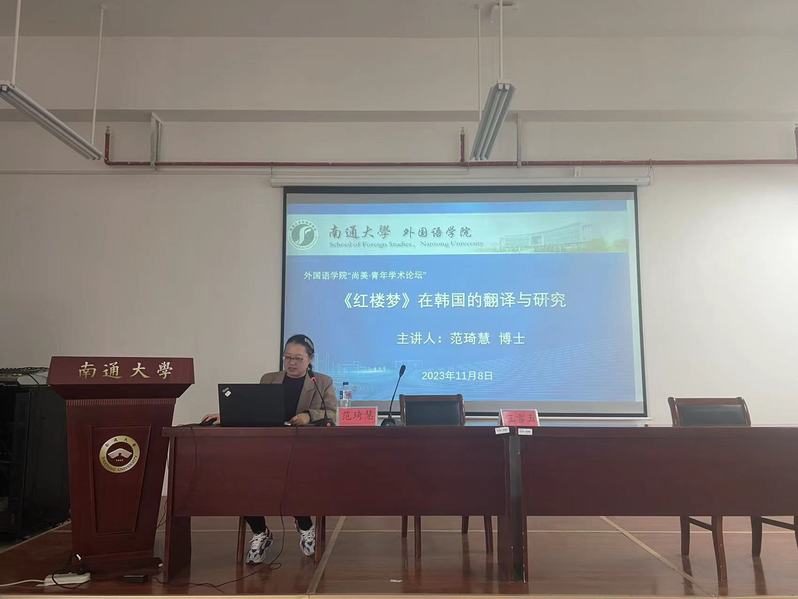 11月8日下午,云顶国际学术品牌项目“尚美·青年学术论坛”第六期在25号楼701报告厅成功举办。云顶国际公外三部范琦慧博士和日语系付改华博士担任本次论坛的主讲人。她们分别以“《红楼梦》在韩国的翻译与研究”和“基于KH Coder的《朝日新闻》涉苏报道批评话语分析”为题做了专题学术分享。范琦慧博士详细介绍了《红楼梦》四个时期的主要韩文译本,以及它们各自的翻译特点,在梳理韩国《红楼梦》研究发展历程的基础上总结了韩国红学研究的六个主要方向。付改华博士利用KH Coder计量文本分析工具对2013-2022期间日本主流媒体《朝日新闻》的涉苏报道进行词频统计,解读日本主流媒体涉苏报道的信息传播、议程设置介入方式,运用批评话语分析方法对案例话语样本的文本特征予以阐释,以明确其涉苏报道的话语建构特征。
